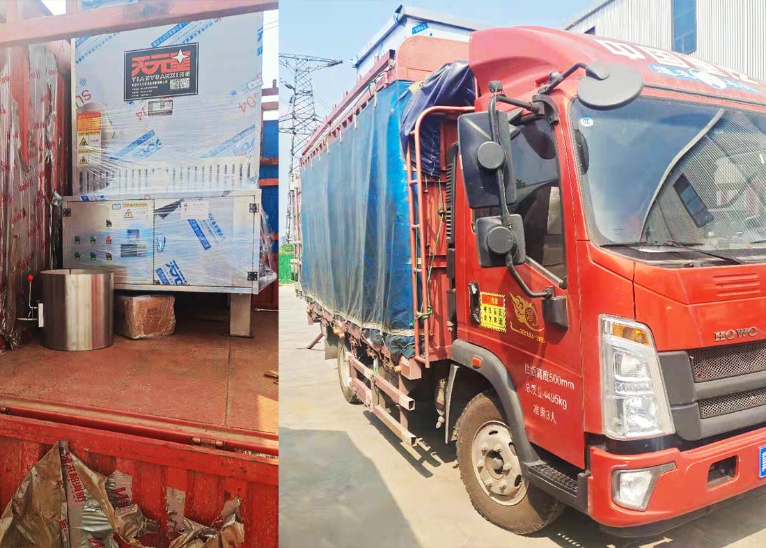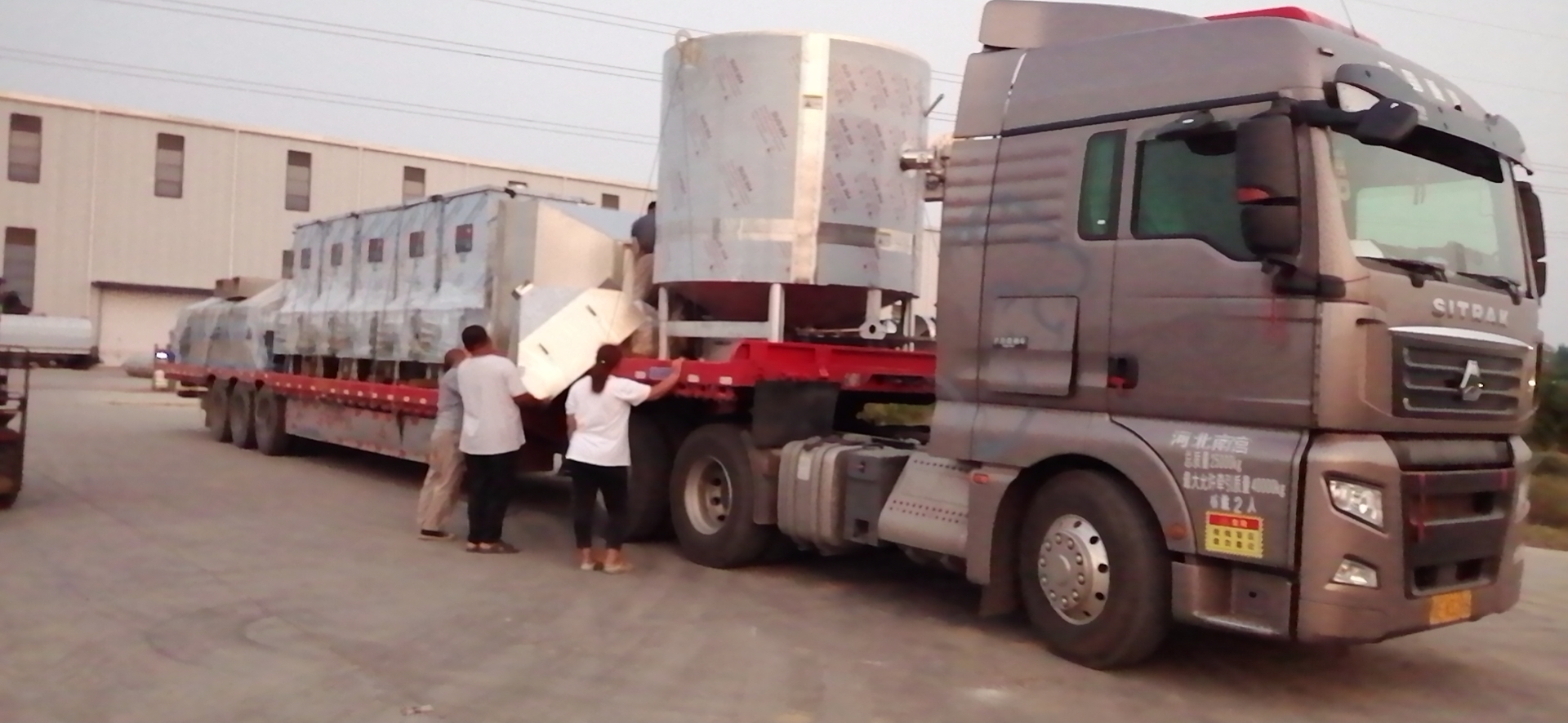 熱風(fēng)爐、煮鍋、河南收料小車、生物顆粒燃燒機三車發(fā)貨