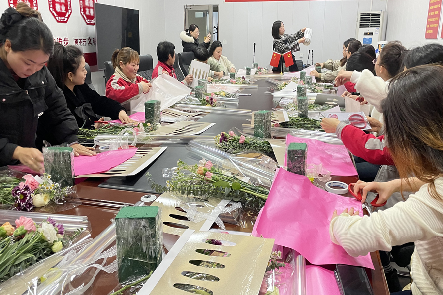 隨著春天的腳步漸近,我們迎來了屬于所有女性的特別日子——三八婦女節。為營造濃厚的節日氛圍,提高婦女同胞的獲得感、幸福感和歸屬感,38天元星組織開展了三月花開女神節,芳華綻放天元星”插花活動。活動中,大家將一束束鮮花、配草鋪在桌面上,一邊享受著花香,一邊構思著自己想要設計的花型。大家取材、剪葉開始,左手持花,右手持剪刀對鮮花進行修剪,插入花泥中,逐步完成自己的花藝作品。活動當天,現場氣氛熱烈而溫馨。專業的插花老師向大家介紹了各種花卉的特點和插花技巧,學員們配合著老師開始親自動手嘗試,從一開始的小心翼翼到后來的大膽創意、巧妙搭配,一幅幅造型各異、錯落有致的花束伴隨著陣陣花香呈現在大家的眼前。低語交流,互換花枝,贊美夸贊,無一不透露出此刻的溫馨與放松,欣賞著通過自己雙手制作出來的花藝作品,所有人的臉上洋溢著喜悅的笑容。